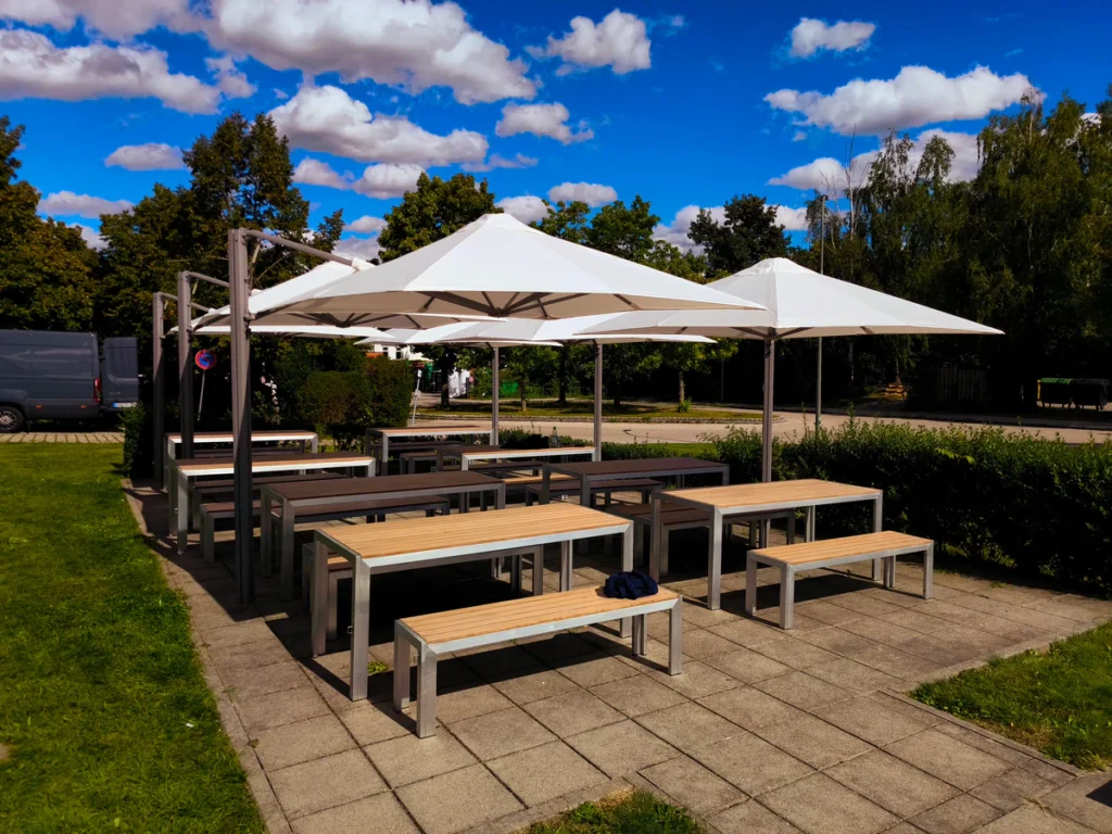 Durchdachte Sonnenschirm-Lösungen für Gastronomie, Kommunen, Bildungseinrichtungen und anspruchsvolle Außenflächen.